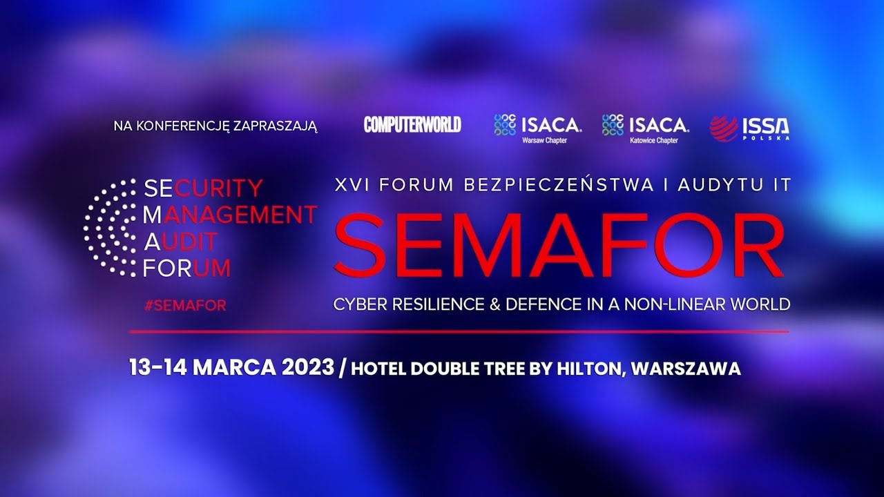 SEMAFOR to idealne miejsce do zapoznania się z bieżącymi zagrożeniami i ciekawymi case studies z zakresu cyberbezpieczeństwa. To wyjątkowa, doskonale znana w środowisku osób związanych z bezpieczeństwem, okazja do zdobycia nowego doświadczenia oraz nawiązania i podtrzymania relacji w środowisku bezpieczeństwa i audytu IT. Tegoroczna edycja konferencji odbędzie się w dniach 13-14 marca 2023 w Warszawie. Konferencję organizujemy w formule stacjonarnej.